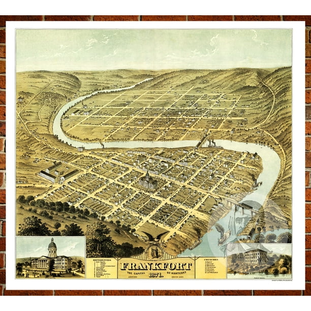 Ted S Vintage Art Map Of Frankfort Ky 1871 Old Kentucky Decor 18